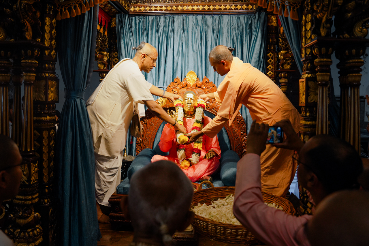 In 1977, just before Srila Prabhupada, the Founder-Acharya of ISKCON, attained Maha Samadhi, he established a system of initiation (diksha) through his representatives, called ritviks. Under this system, all future devotees would become direct disciples of Srila Prabhupada, ensuring he remained the Acharya of ISKCON.